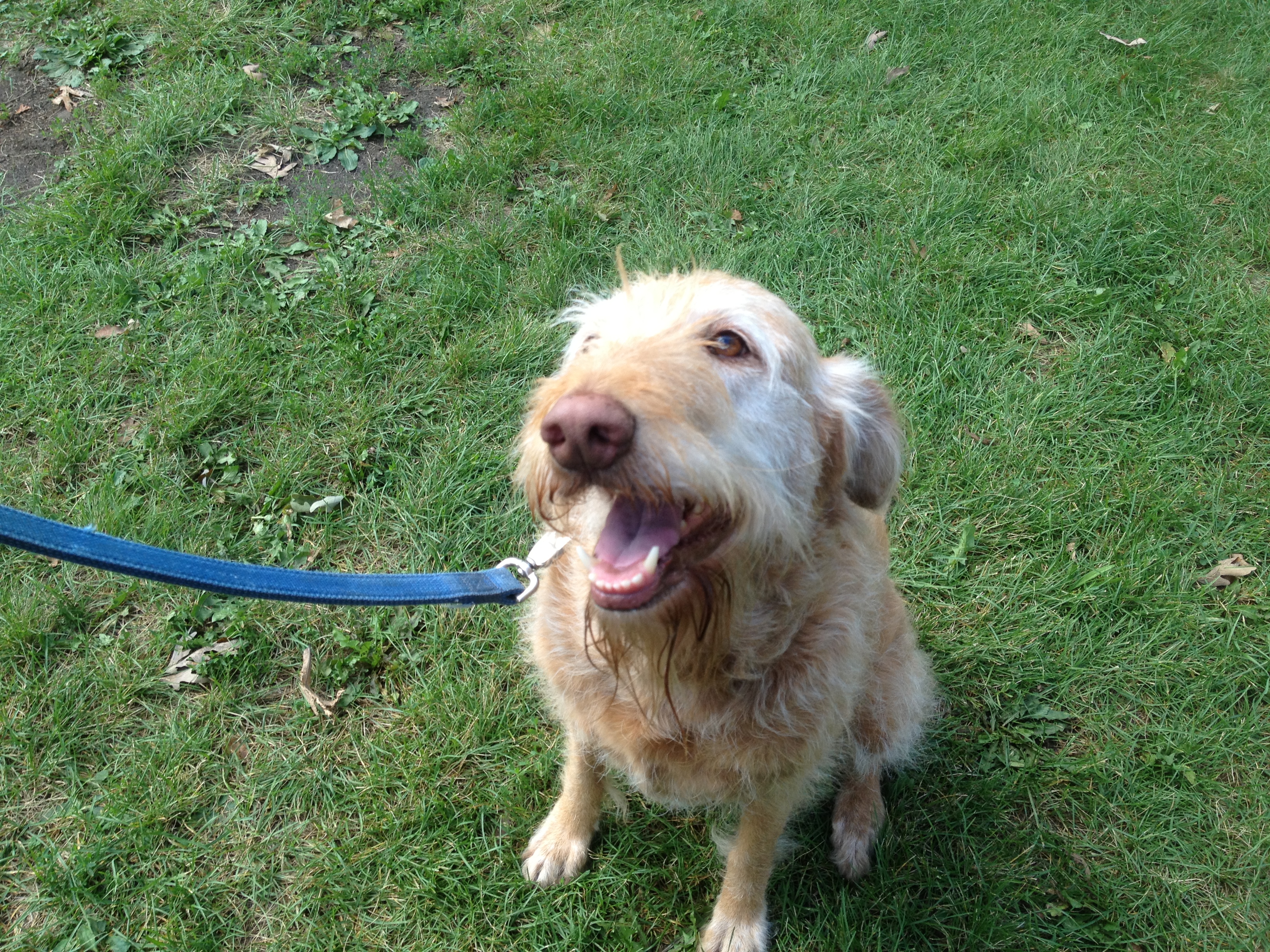 Meet Gilly Rose! This dog was so cute and funny, with a tuft of hair on top of her head, and a little beard, leaning up agains her mom lovingly, we couldn’t resist. She is a black lab-poodle mix, bred by a high school student who sold the puppies to family friends in an effort to raise money for college. The best part is that all the owners get together every year for a dog birthday party, the dogs are now 7.5 years old.